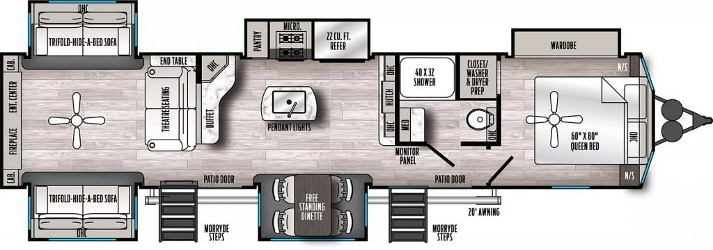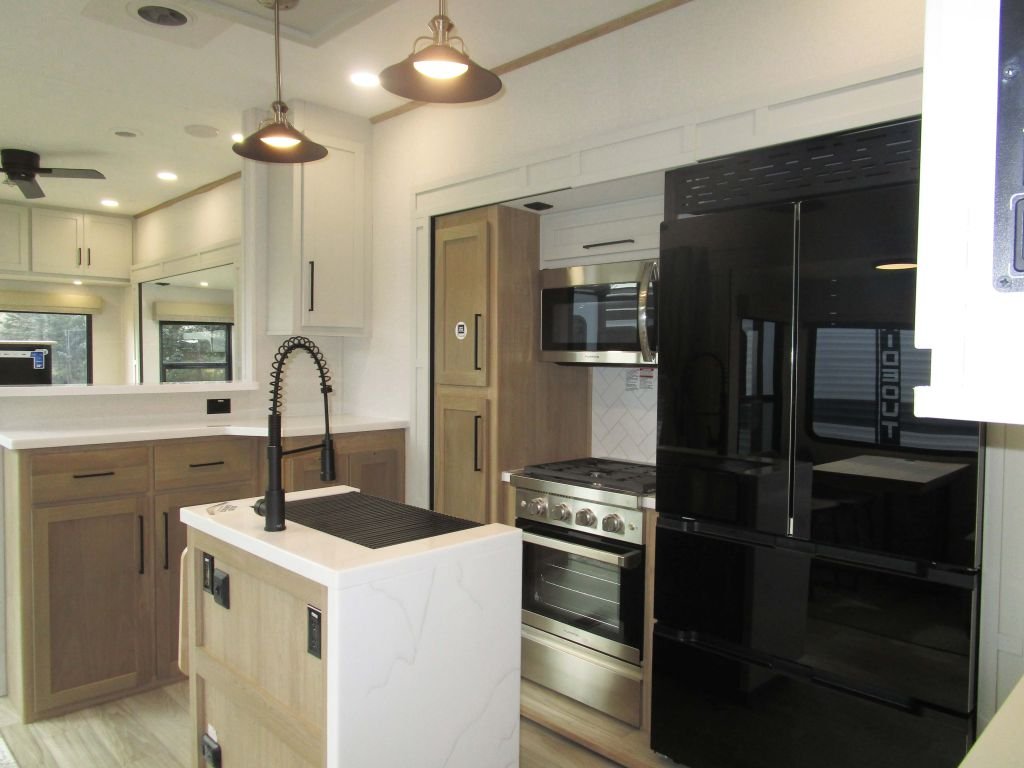 Massive Rear Den: Ample space for entertaining with two hide-a-beds and theater seating. ? Natural Light Flow: Two separate sliding glass patio doors flood the living room with light and offer dual access. ? Gourmet Island Kitchen: Buffet-style solid surface countertops, a full walk-in pantry, and a commercial-style faucet.