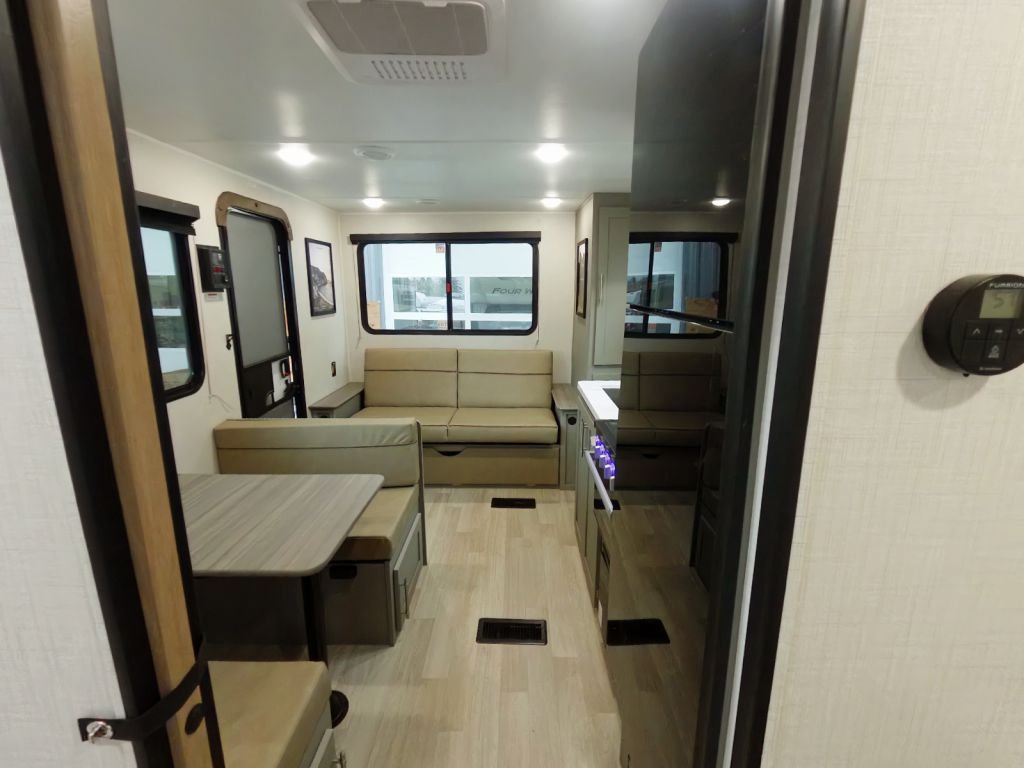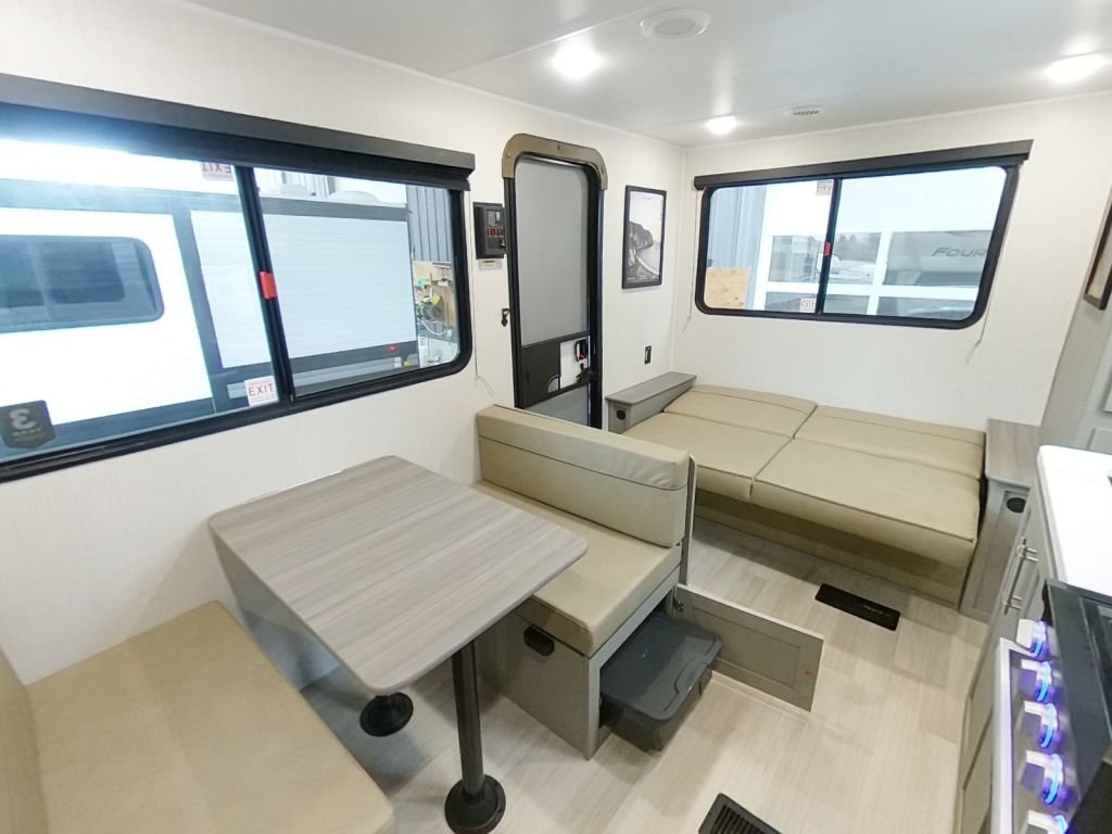 - Thoughtful Storage: Flex storage systems, under-dinette EZ-Slide bins, and even dedicated fishing rod holders!