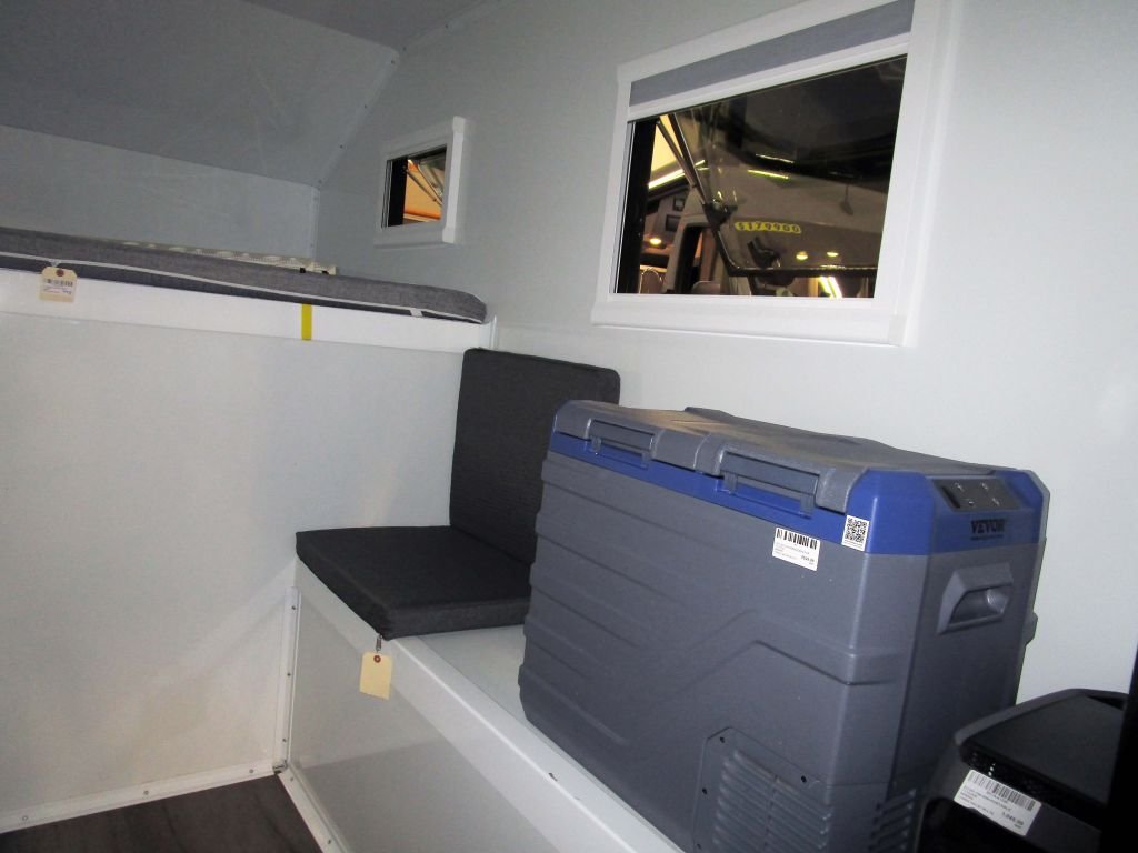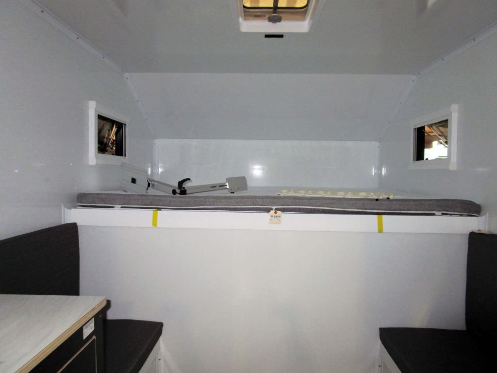 Manual Jacks, 3'' Queen mattress, 2 Radius acrylic thermal awning windows with built in screen and blindes • Composite entry door with screen • 4 season construction • Laminated composite panel technology construction • R9 fully insulated panel construction with no wood or thermal transfer • Bonded aluminum corner extrusions • 1 piece seamless roof, Tie down straps (Set of 2)